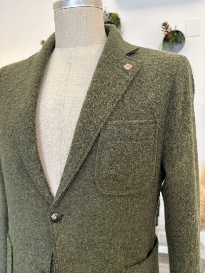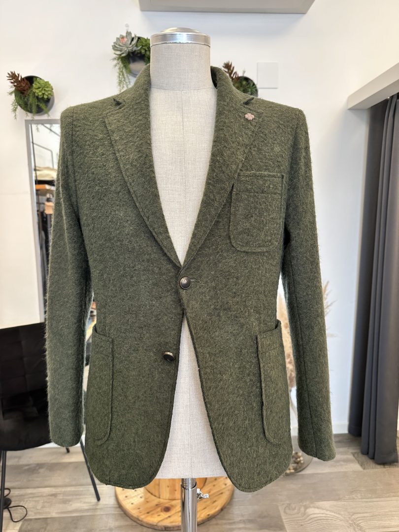 Giacca uomo Slim Fit in misto lana verde bosco.